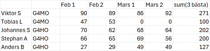 21/2, 28/2, 14/3, 21/3, klockan "efter Vinterserien"